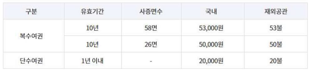 발급 여권 및 수수료