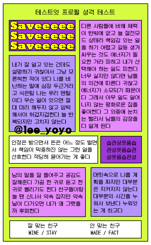 | SAVE(세이브) | ISFP |